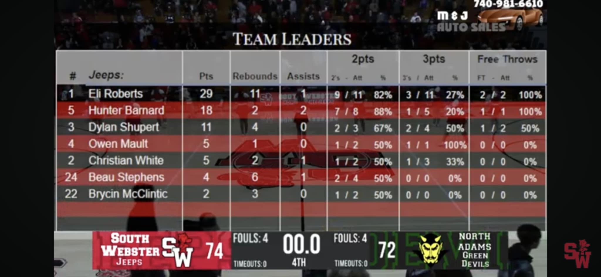 Webster hung on for the win. North Adams missed several free throws in the 3rd and fourth. It was a really good game.