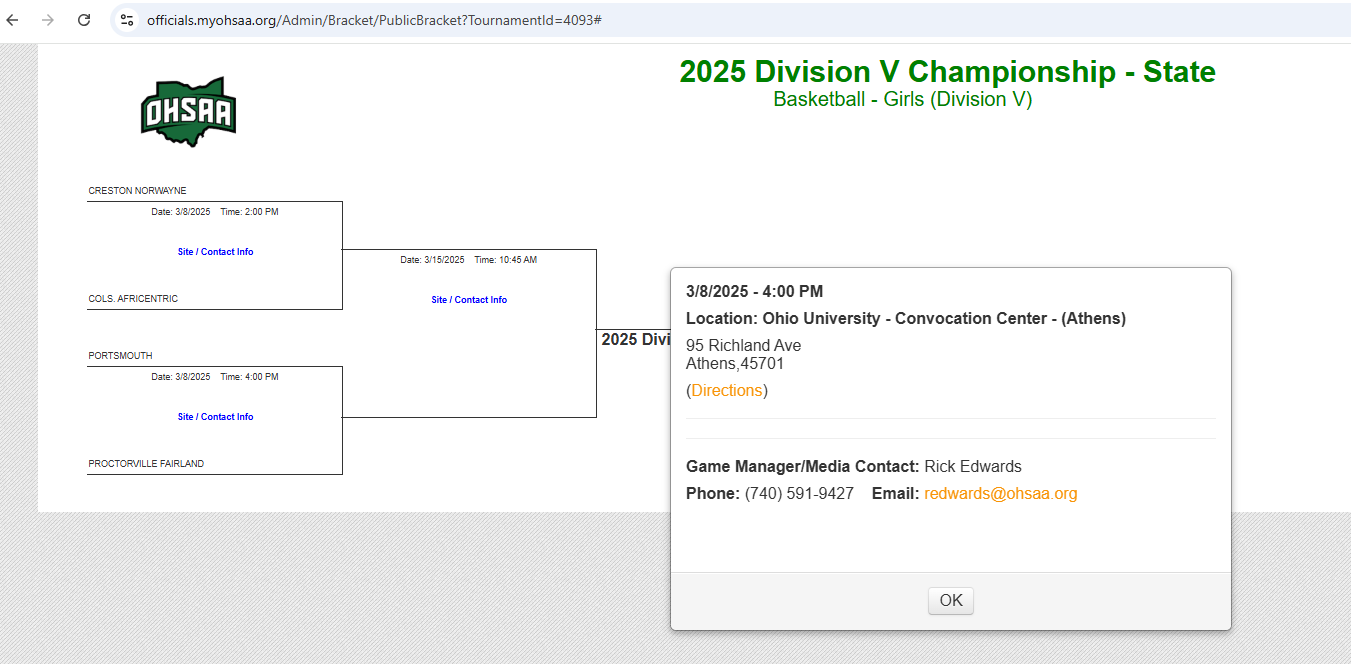 I saw the athletic schedule for Ohio University and they had Saturday March 8th as OHSAA Girls State Semi Finals- so OU was on reserve, however it comes down to attendance and the OHSAA has sorted messed up a good thing they had going on-